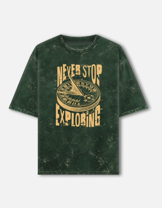 Never Stop Exploring Unisex Acid Wash Oversized T-Shirt