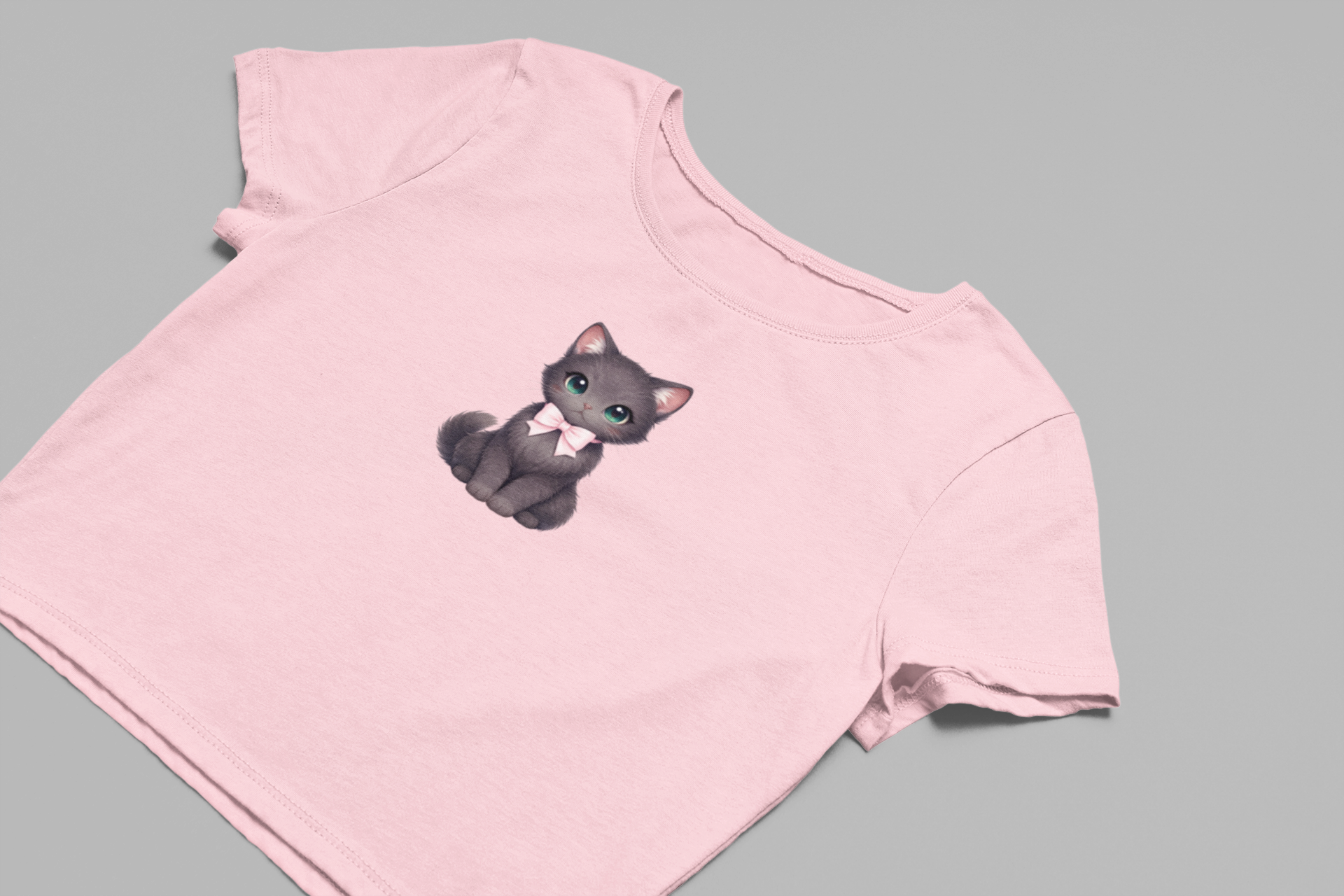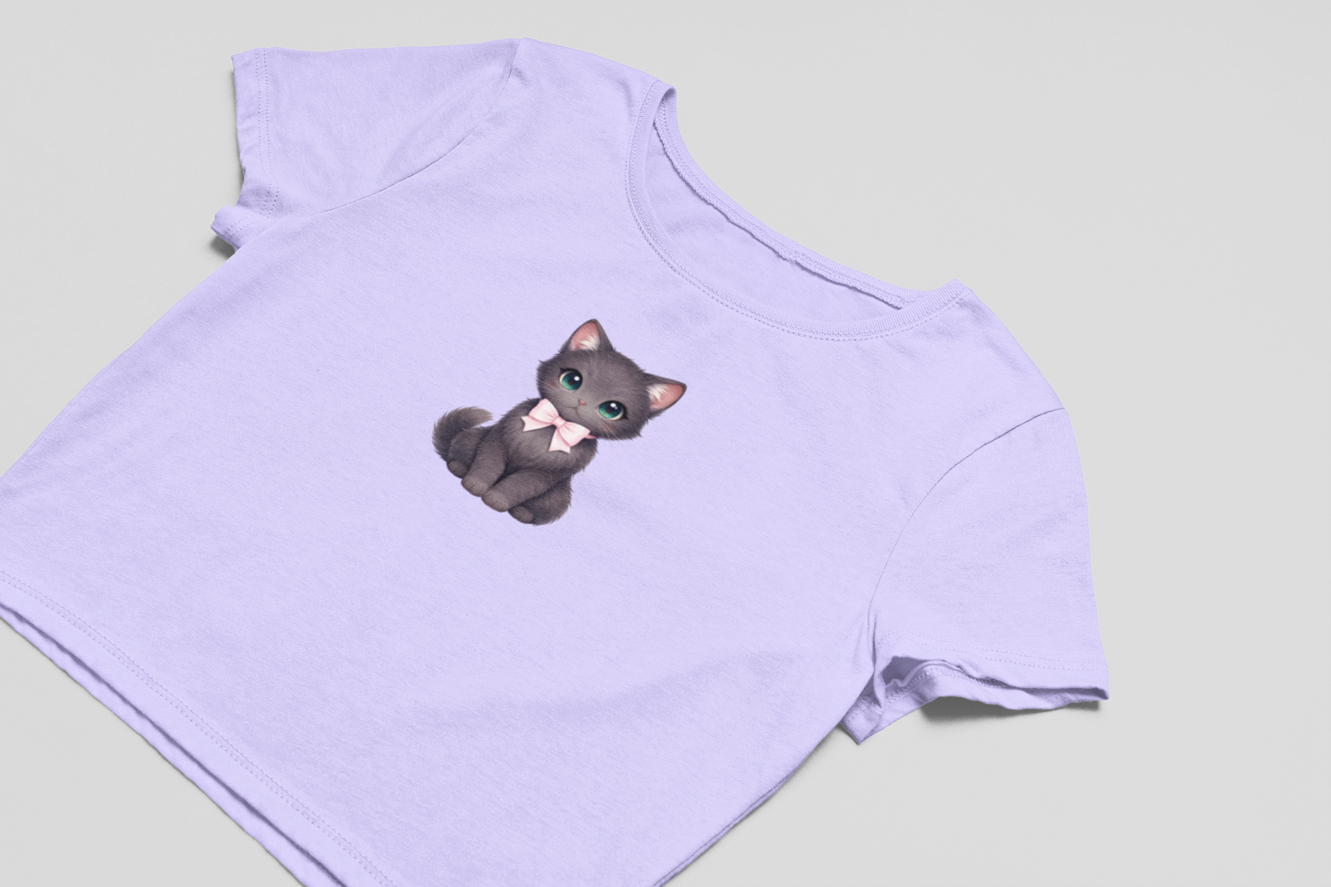 Add a touch of charm to your wardrobe with our Cute Black Cat Baby Tee, featuring an irresistibly sweet kitten illustration that’s equal parts cozy and stylish. This design showcases a fluffy black cat with big teal-green eyes and a soft pink bow, creating a look that’s elegant, playful, and totally heart-melting. Perfect for cat lovers and fans of cute aesthetics, this tee makes a subtle yet standout statement.