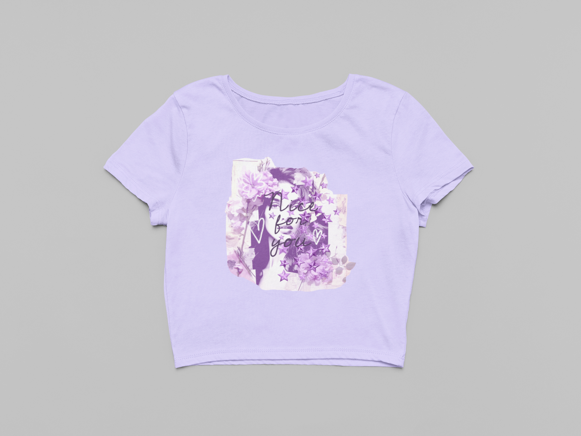 Add elegance and confidence to your casual wear with the “Nice For You” women’s Baby Tee. Featuring an artistic design in soothing lilac and violet tones, this tee blends modern femininity with creative flair. The graphic showcases a stylish portrait surrounded by delicate floral accents and star details, paired with the phrase “Nice for You” — a perfect reminder of self-love and individuality.