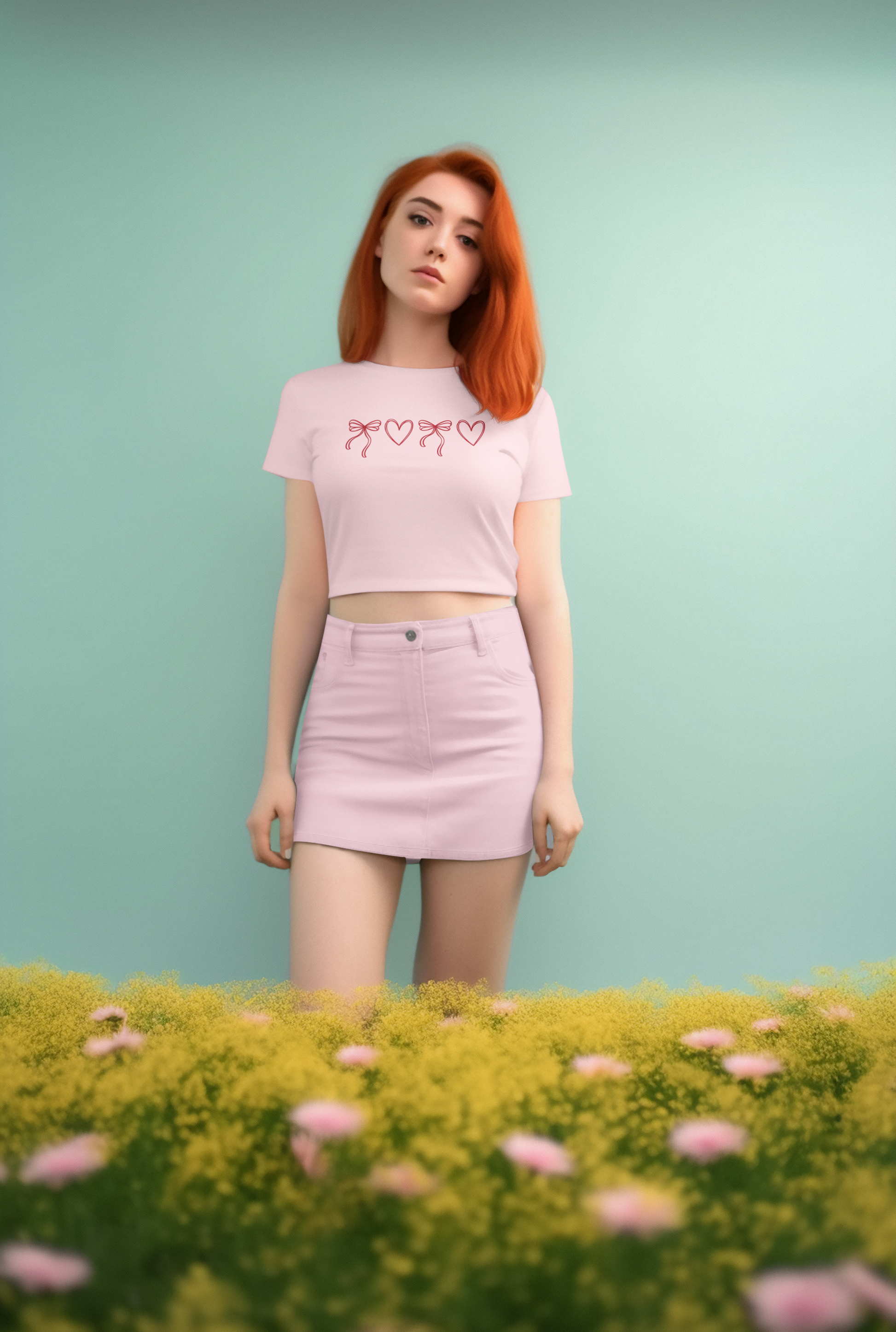 This baby tee blends cute-core and coquette aesthetics with bold graphic appeal. Whether you’re dressing it up or keeping it casual, the red bow and heart design adds a sweet yet confident statement to your look. It’s perfect for trendsetters who love feminine details and standout graphics.