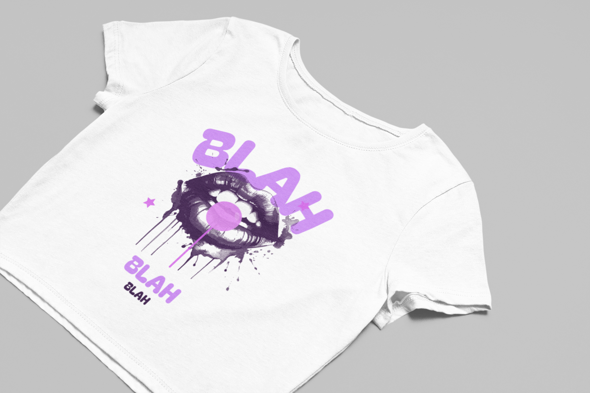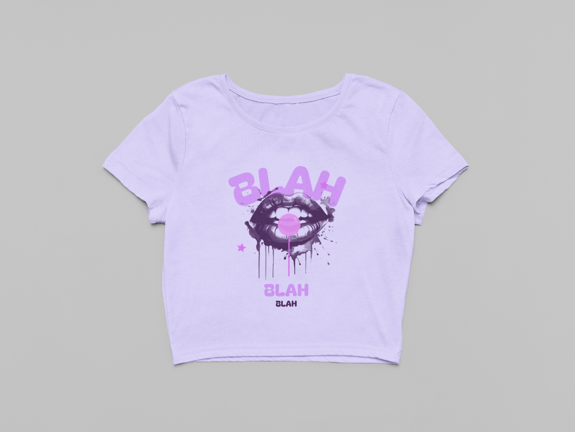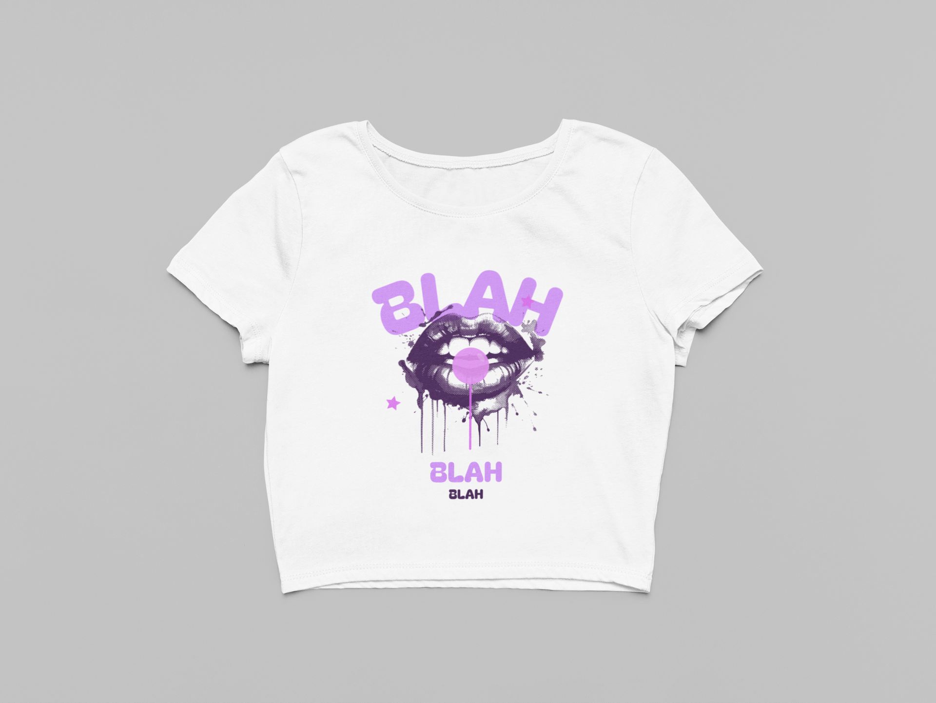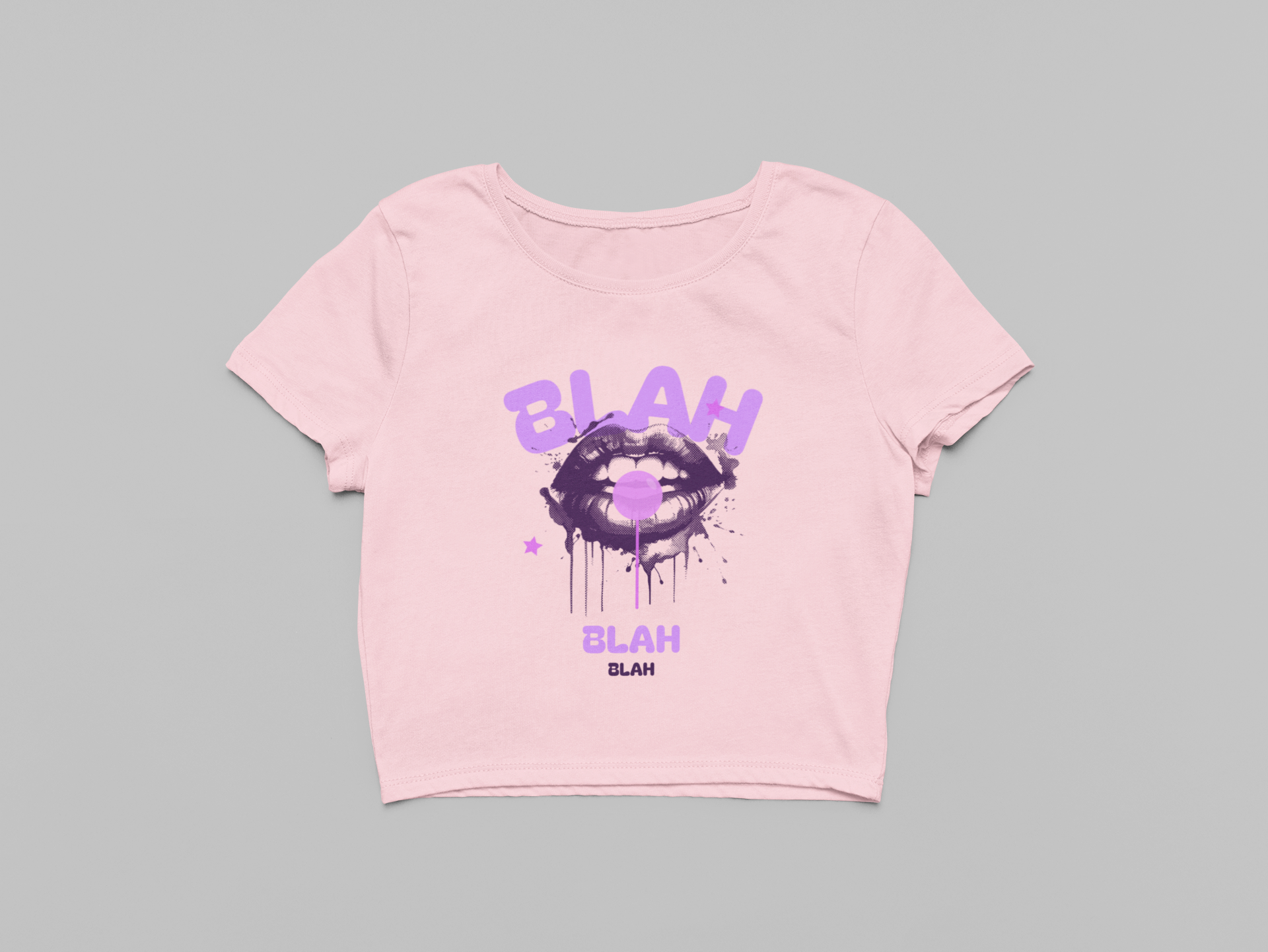 Make a bold statement with this trendy women’s graphic Baby Tee featuring the eye-catching “BLAH” lip print design. Crafted from premium 100% cotton, this Baby Teeoffers a soft, breathable feel and effortless comfort for all-day wear.