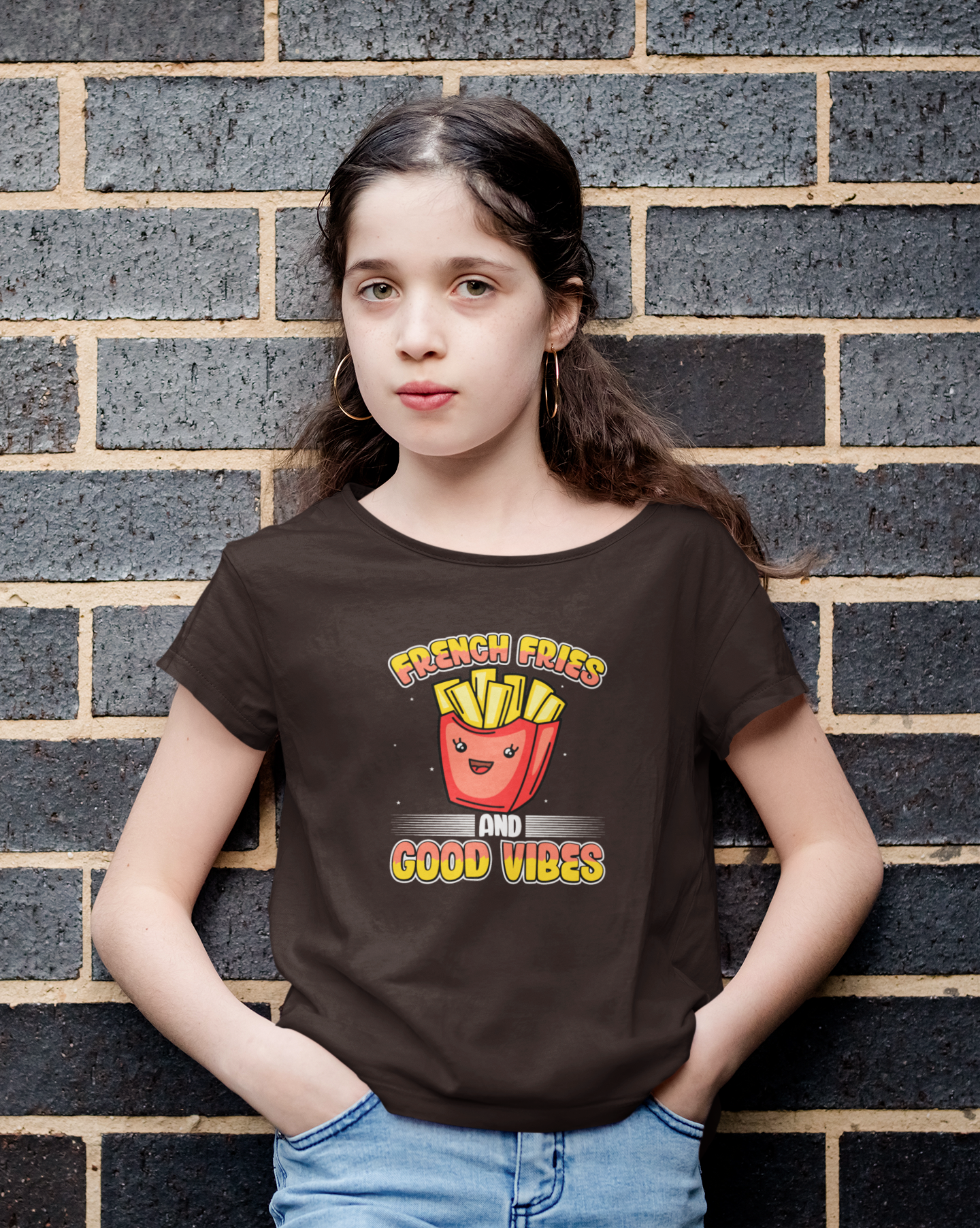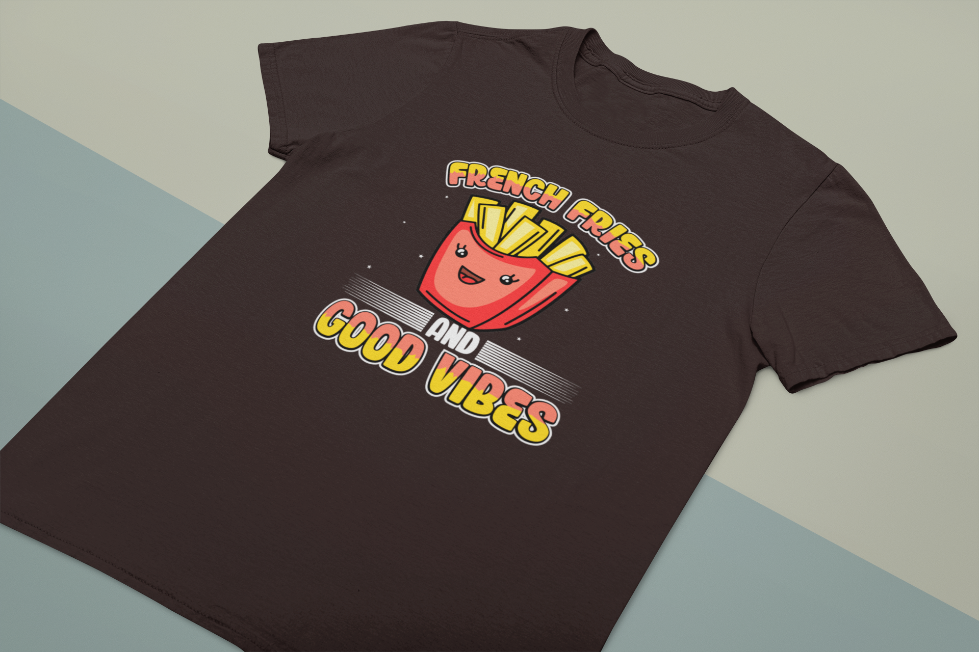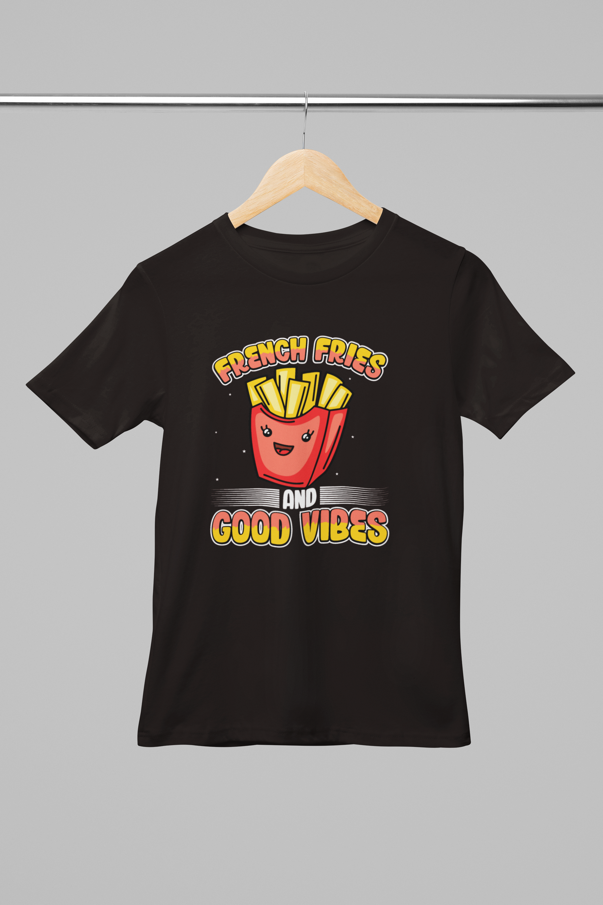 Spread joy and positivity with the fun and lively French Fries and Good Vibes T-Shirt! Featuring an adorable fries box with a cheerful face and bright typography, this design perfectly captures the love for good snacks and great vibes.