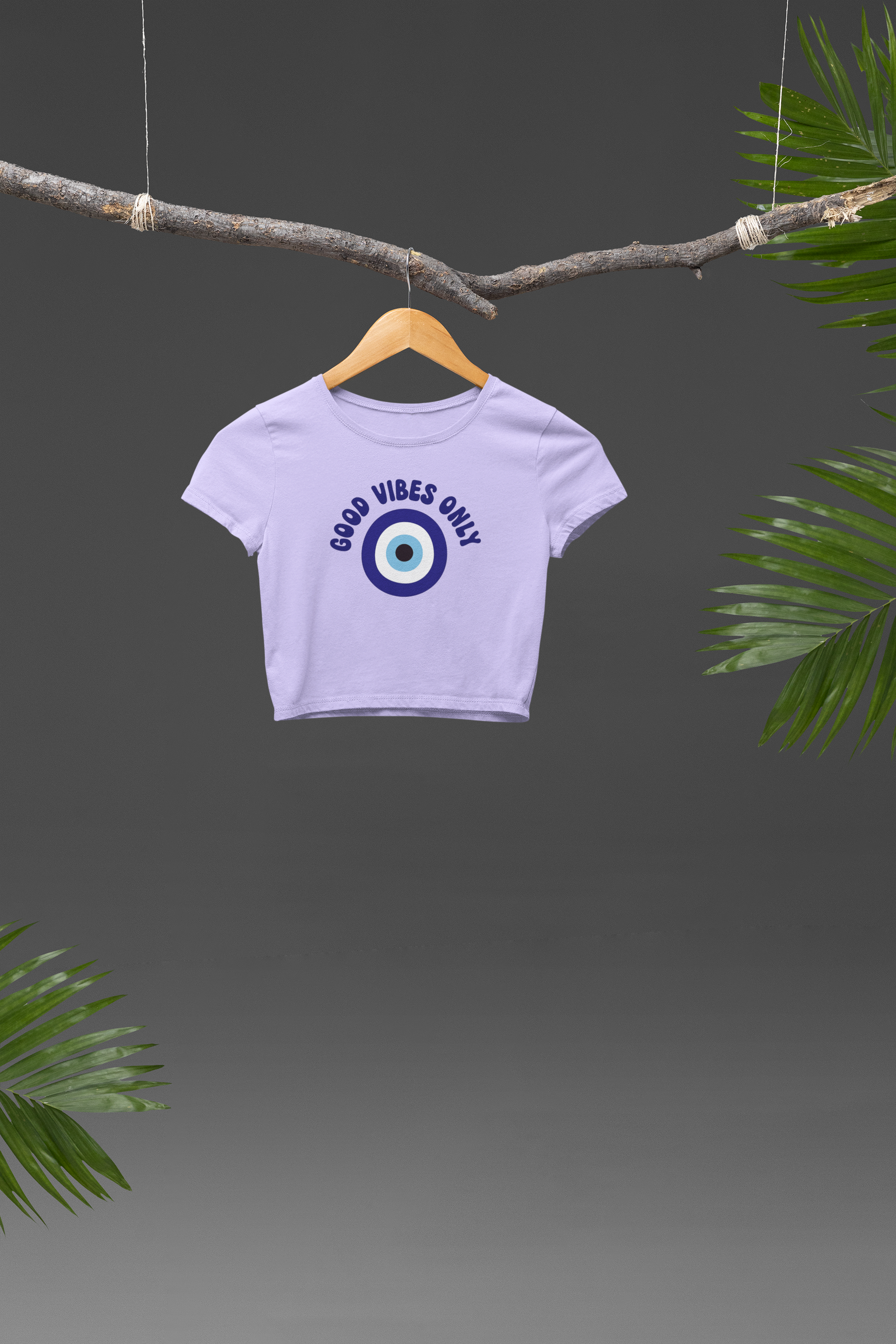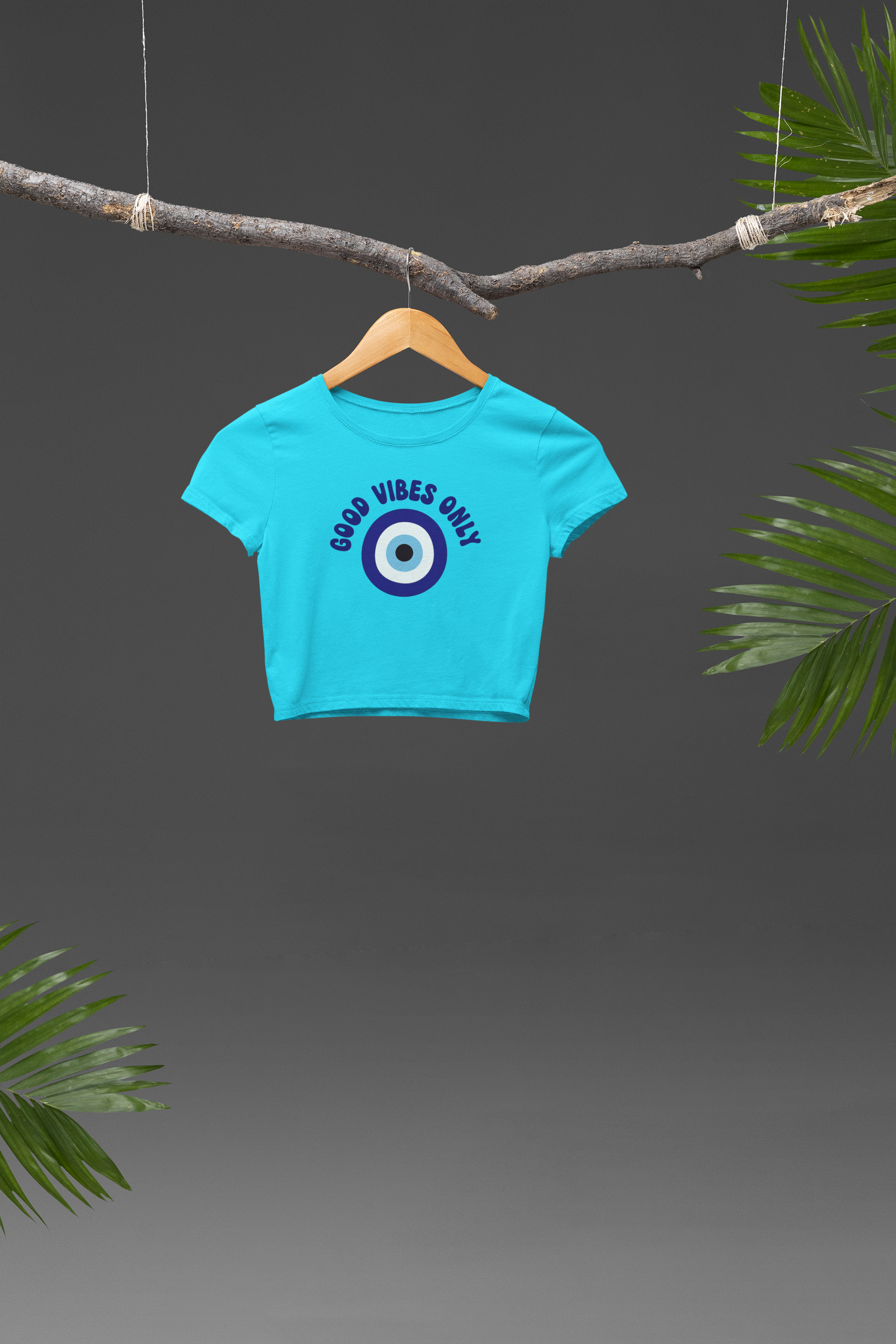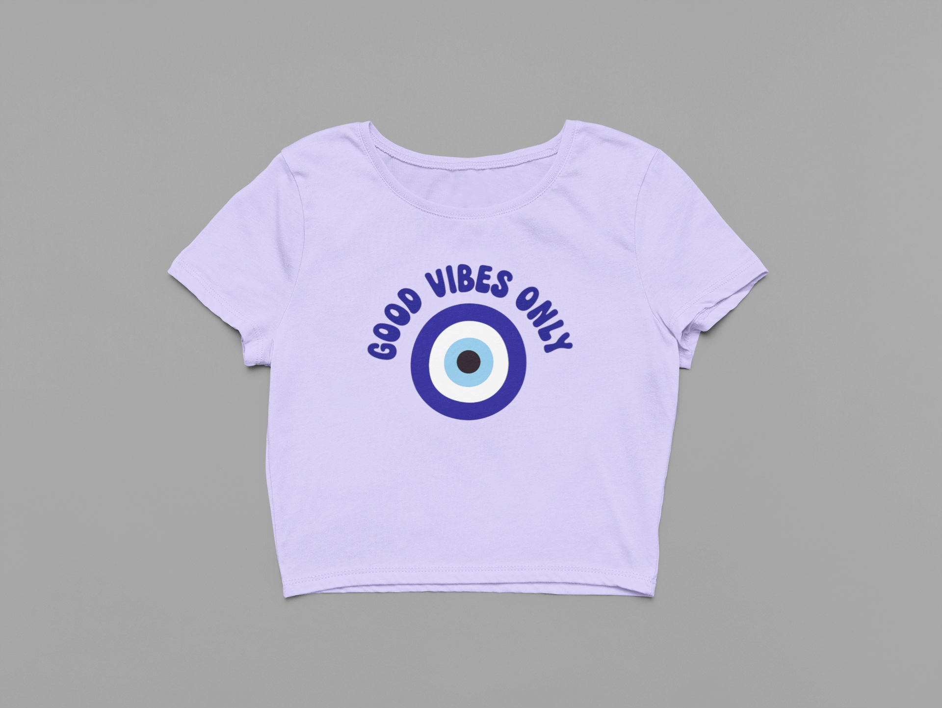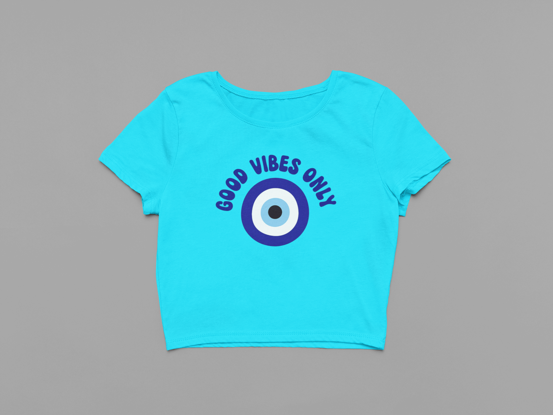 Channel positivity and protection with our “Good Vibes Only” Crop T-Shirt. Featuring a bold evil eye symbol in vibrant shades of blue, surrounded by the uplifting phrase “Good Vibes Only”, this design blends trendy streetwear with a touch of spiritual energy. The evil eye is known as a symbol of protection against negativity—making this tee not just stylish, but also meaningful.
