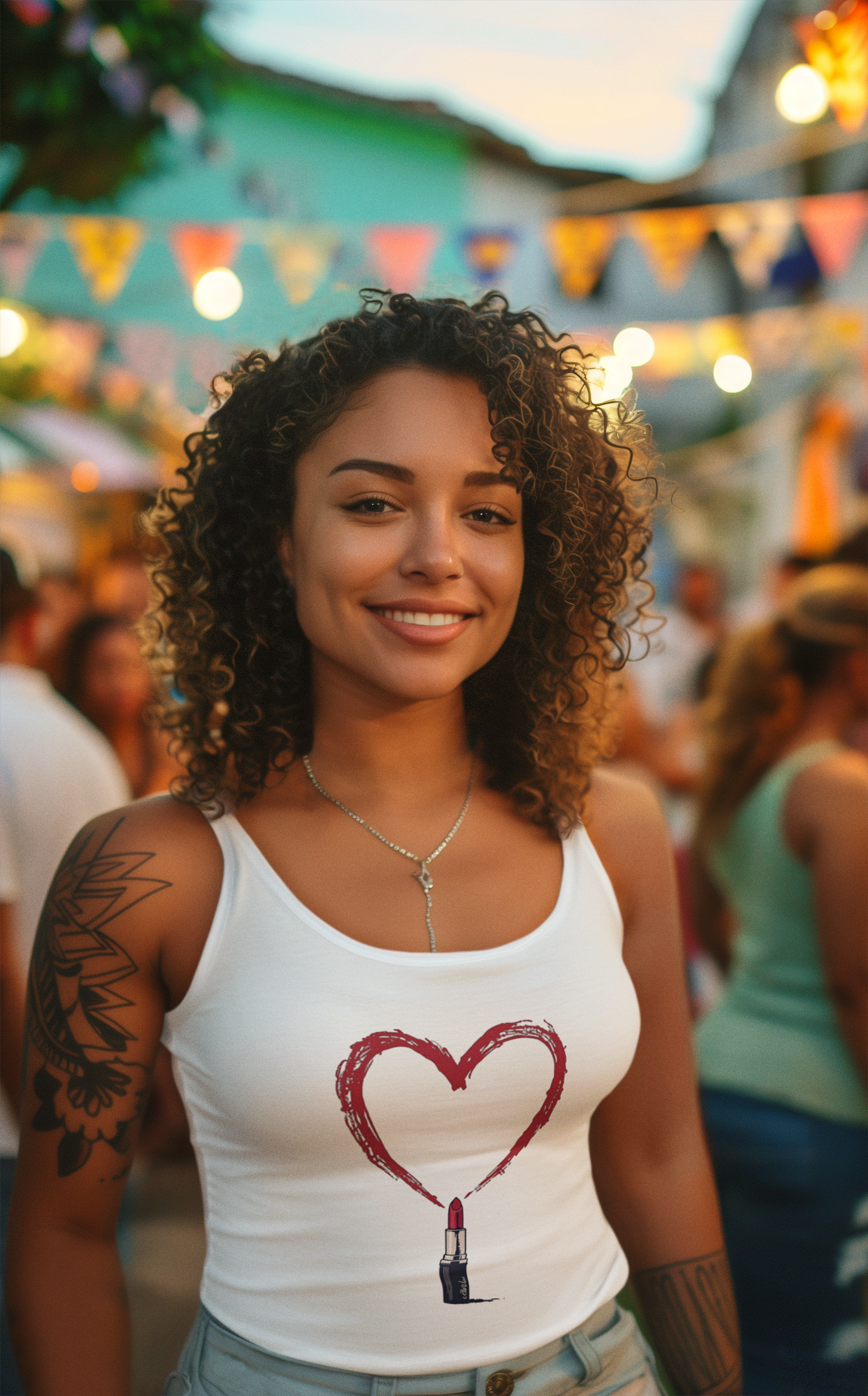 Show off your confidence and love for beauty with our Lipstick Love Crop Tank! Featuring a striking red lipstick heart graphic, this trendy top is for the makeup lovers, fashionistas, and bold souls who wear their heart on their sleeve (or, in this case, their tank)!
