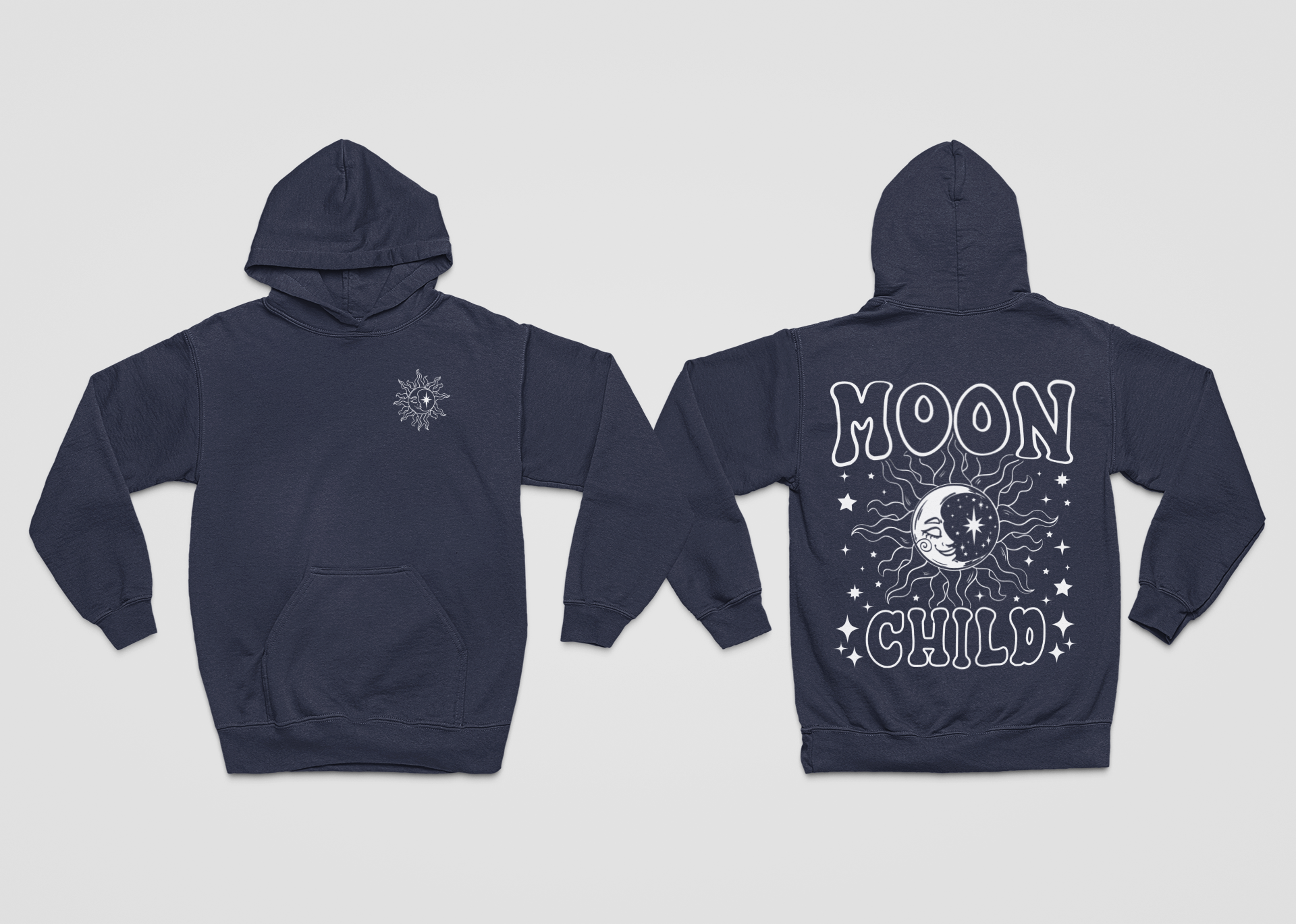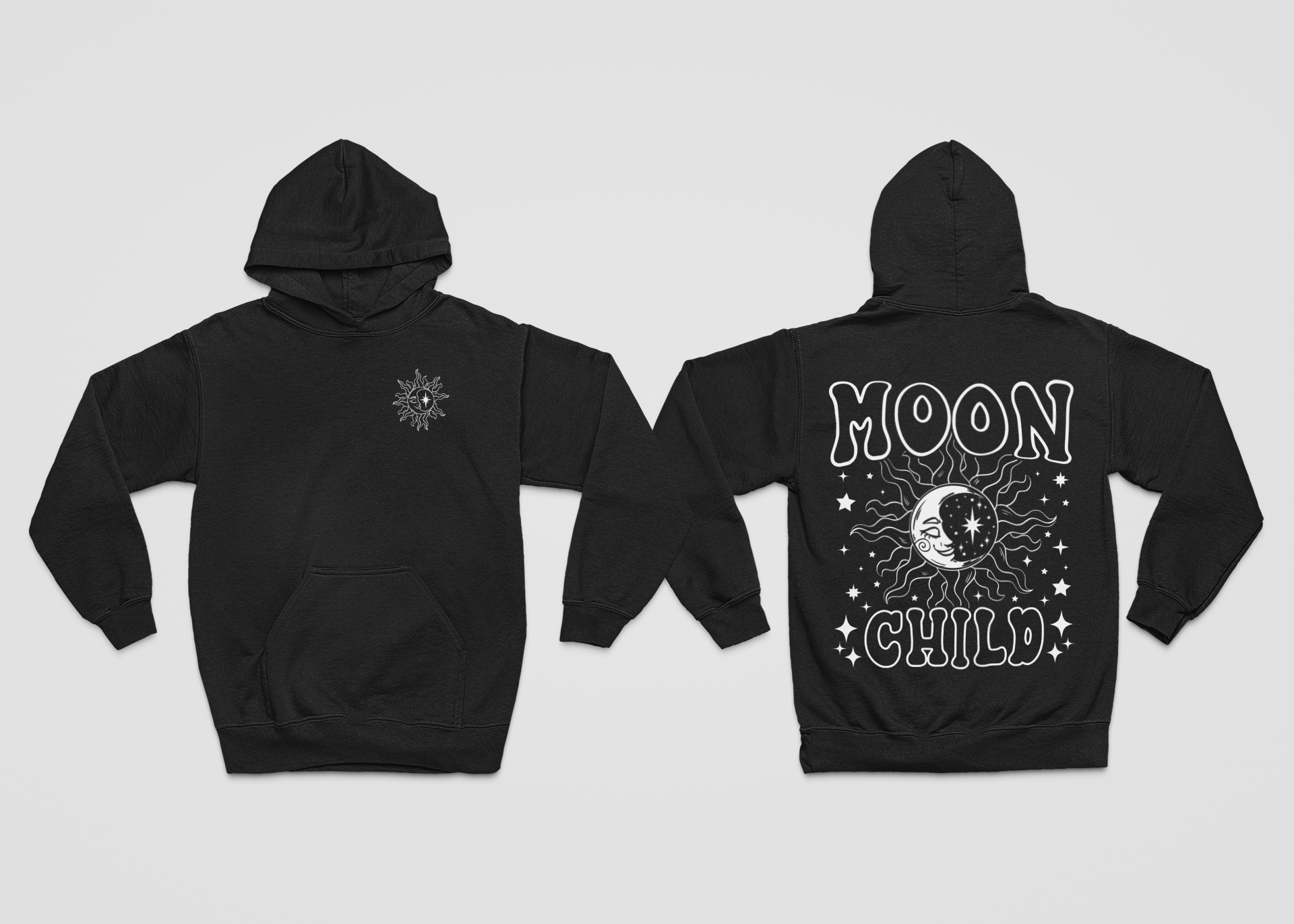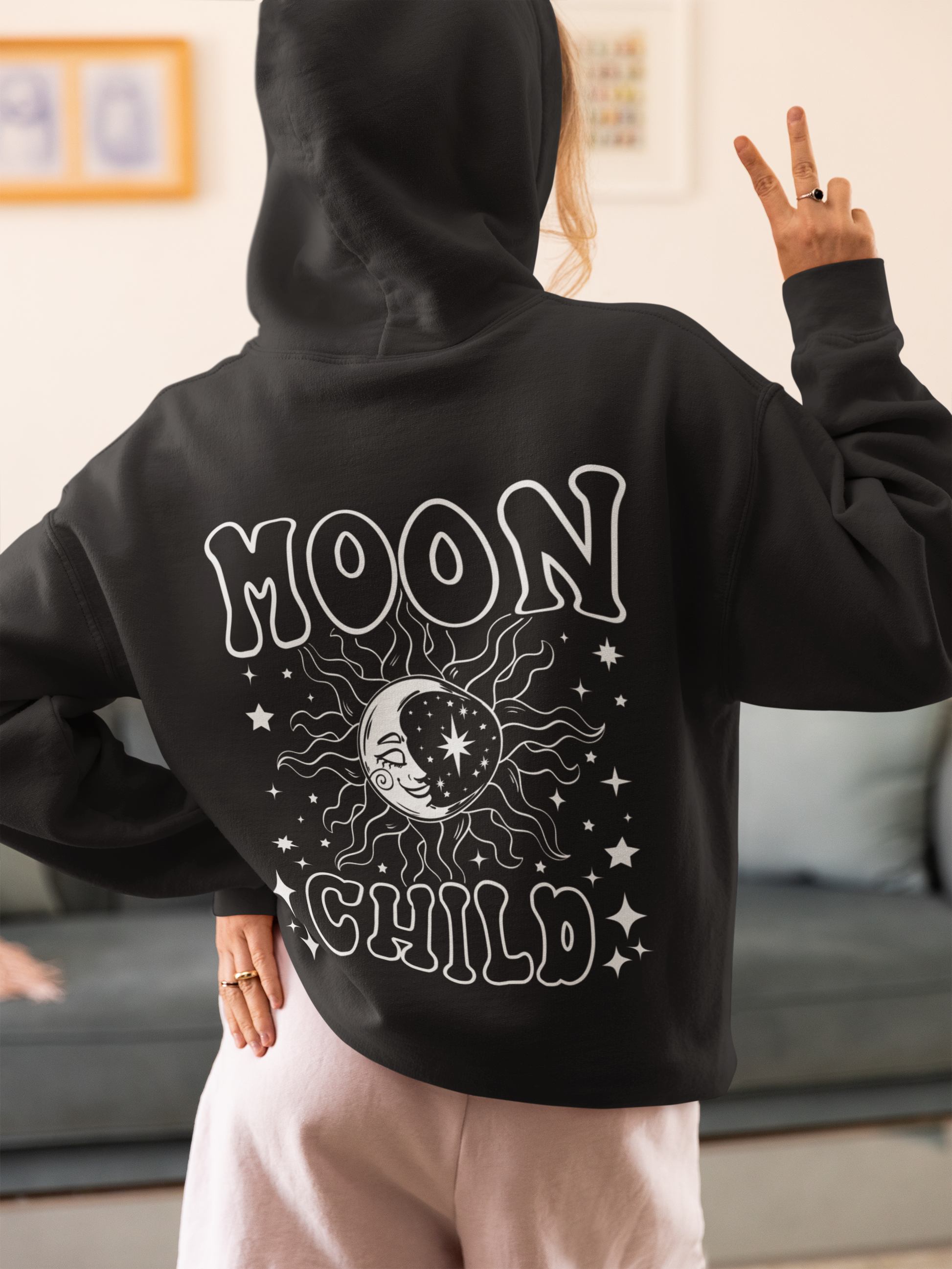 Channel your inner cosmic energy with our Moon Child Oversized Hoodie – a dreamy fusion of art, comfort, and celestial charm. Designed for the free-spirited soul, this hoodie features a bold back print with an enchanting Moon Child graphic — the radiant sun and serene moon intertwined in perfect harmony. The matching minimalist front design, a clean white moon-and-sun emblem, adds a subtle yet stylish balance, making it effortlessly wearable for every vibe.